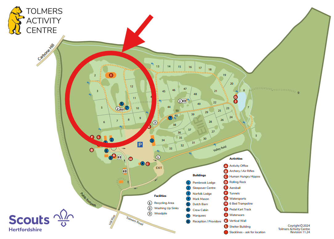Note that we are using site 8 for activities in addition to the field adjacent to the Sleepover Centre. Sites 6 & 7 as shown on the map is reserved for marquess we are setting up for catering and site 9 is also reserved.